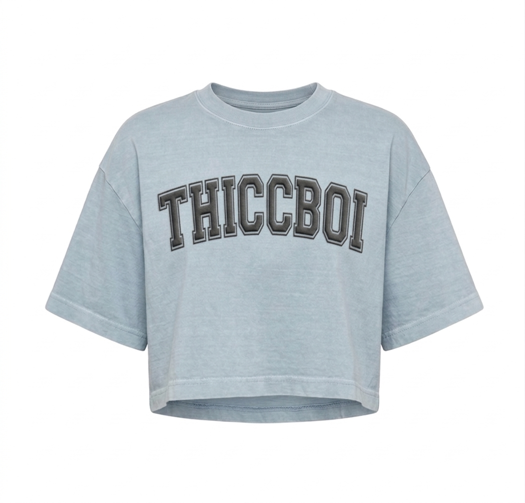 ThiccBoi Drop Shoulder Blue Puff Print Crop *Earned
