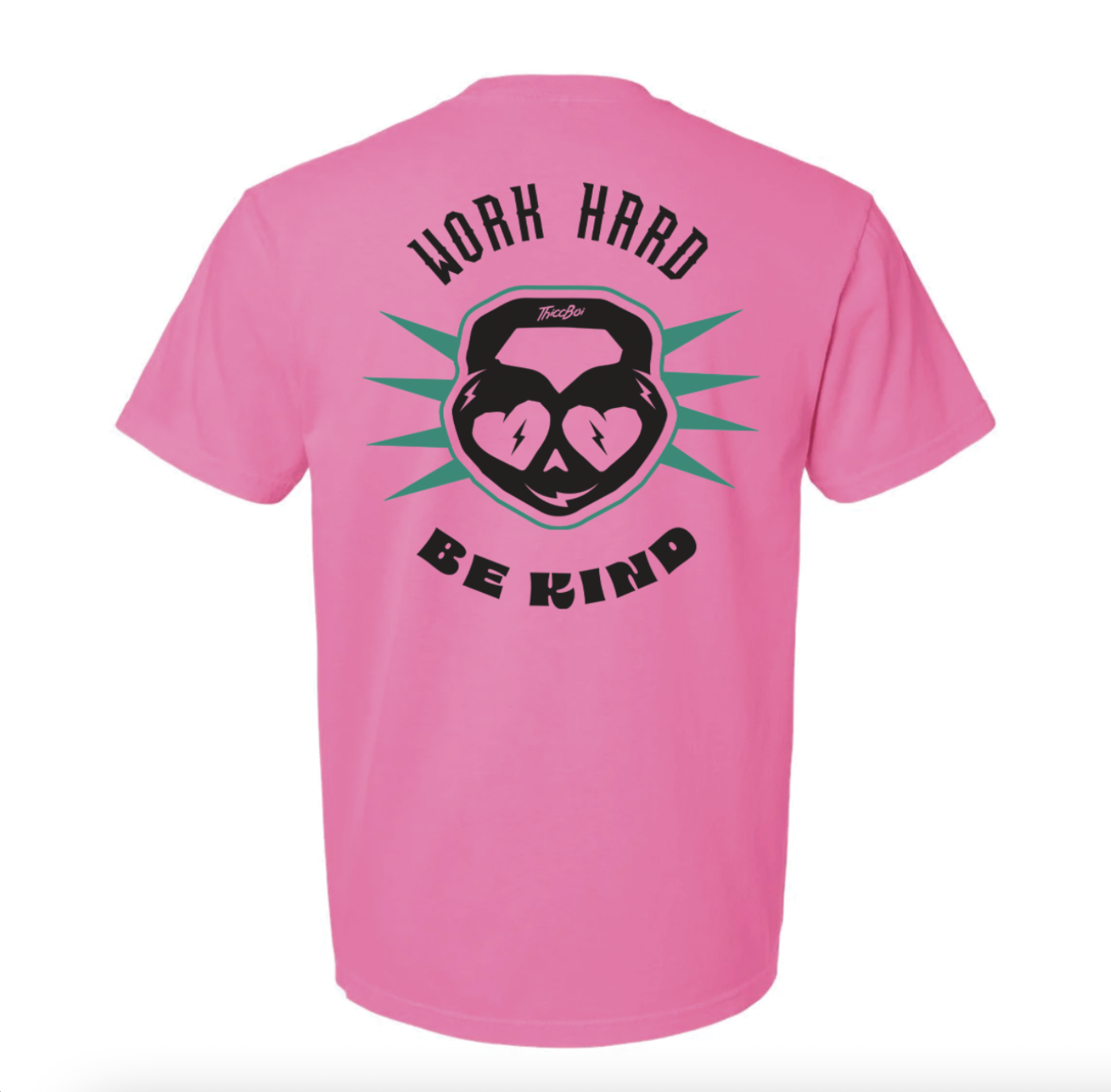 ThiccBoi Neon Pink Work Hard Be Kind Unisex T-Shirt